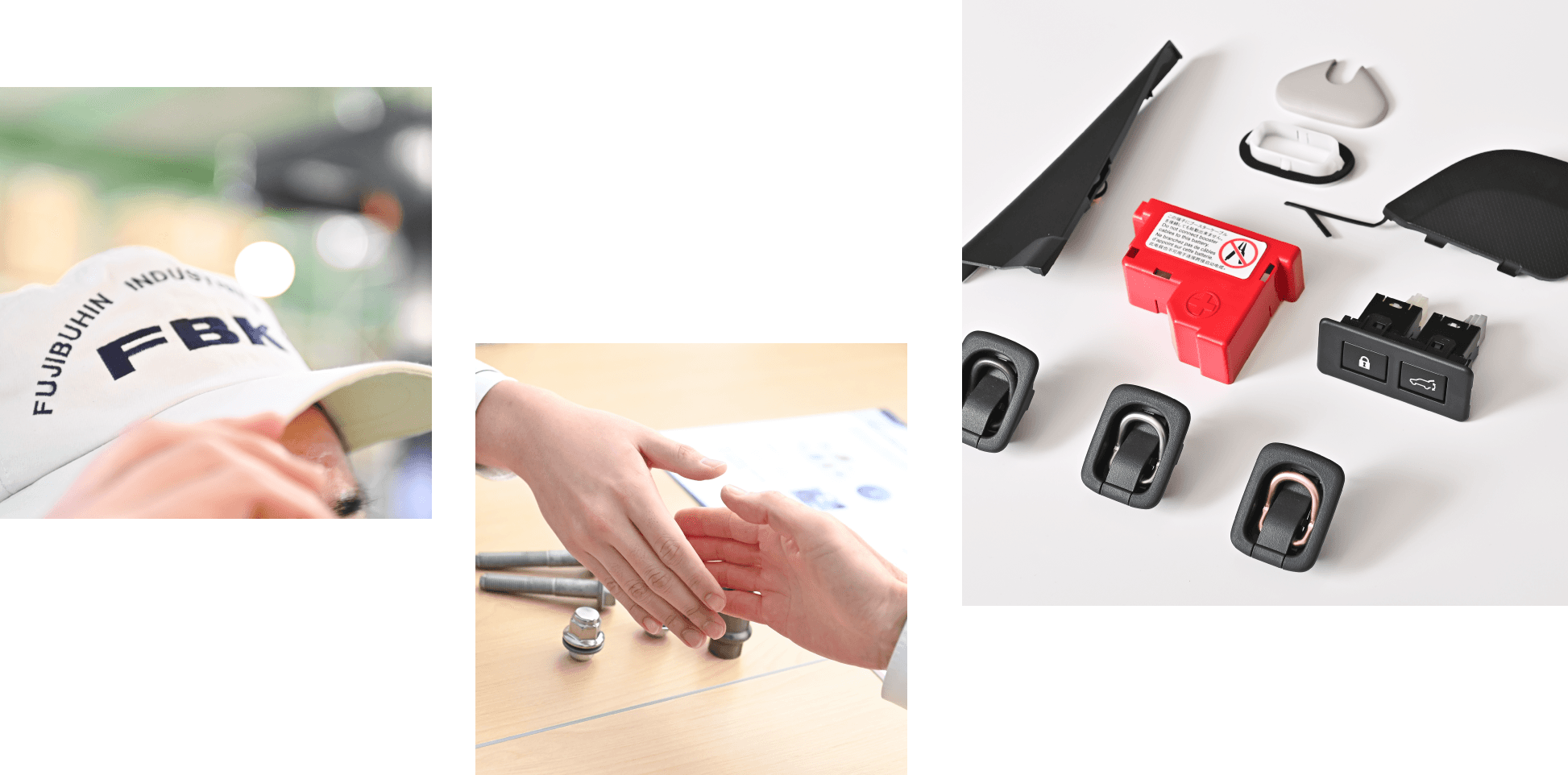 1台の自動車を構成する部品の数は数万点にものぼります。当社が商社機能として提供しているボルト、ナット、ファスナー類だけを例にとってみても、大きさや形状にさまざまな種類があり、1社ですべてを開発し、生産・納入までを行うのは現実的に不可能です。当社は約200社におよぶ取引先ネットワークと、樹脂部品を自社生産できるメーカー機能としての強みを持ち合わせ、お客様の抱える複雑なニーズを一手に引き受ける体制を強化。困りごとの相談から製品の流通まで、ワンストップで対応します。